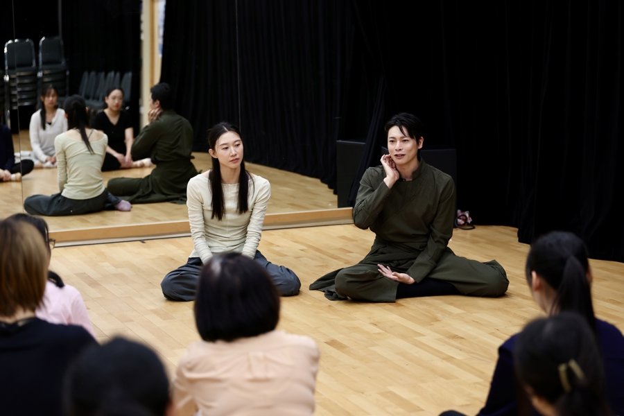 原计划于24日下午举办的舞蹈工作坊,因天气原因调整至27日上午10:30举行。上海歌舞团荣典·首席演员王佳俊、首席演员周晓辉等带领香港舞蹈爱好者,深入体验剧目片段与角色塑造过程。前一天,从联排、公开彩排到正式演出,他们已经跳了三遍《李清照》。第二天一早,他们又打起精神面对香港舞蹈爱好者。虽然工作坊时间变更,但参与者们热情不减。